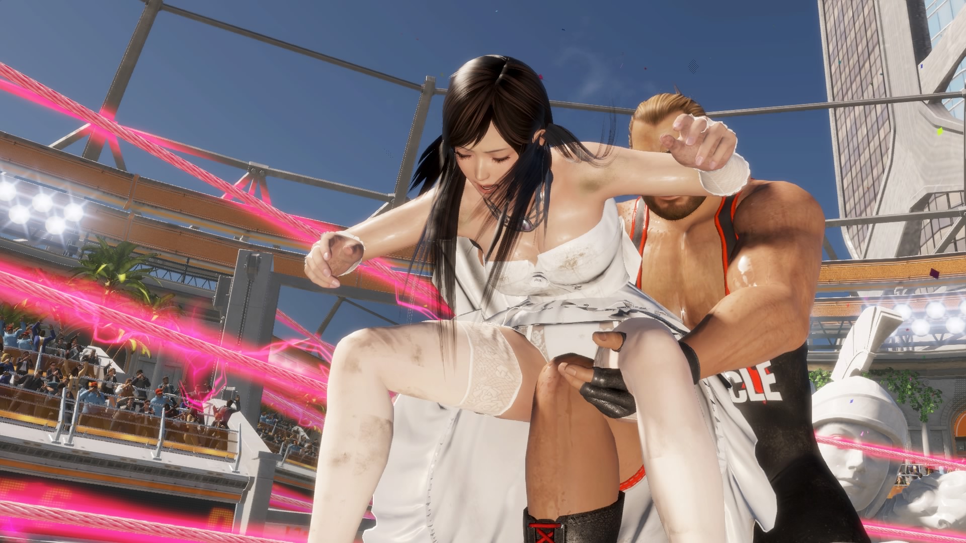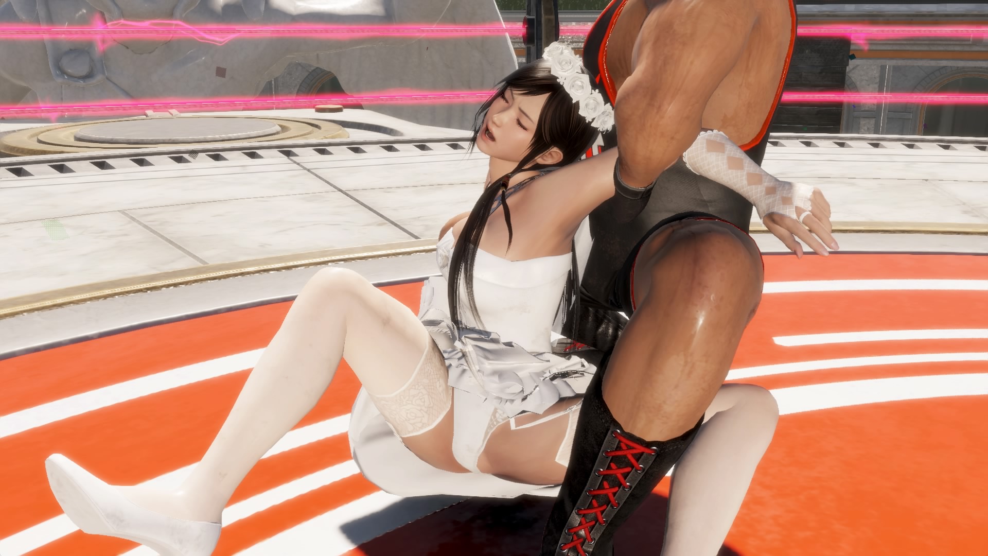 そして屈辱技マッスルバスター。美女の屈辱的な痴態は何度見ても最高の景色です(笑)。